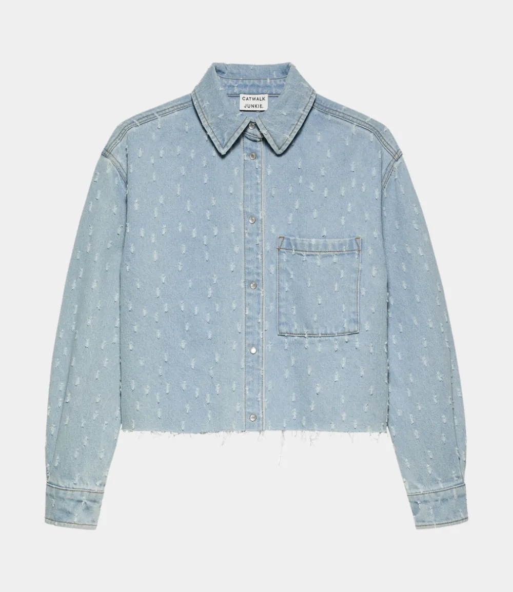 Catwalk Junkie Denim blouse with textured fabric Blue 2502012603-300