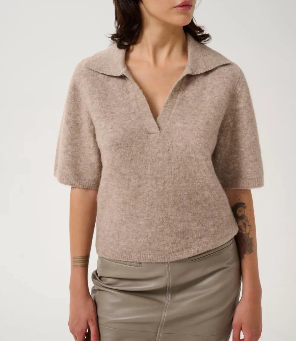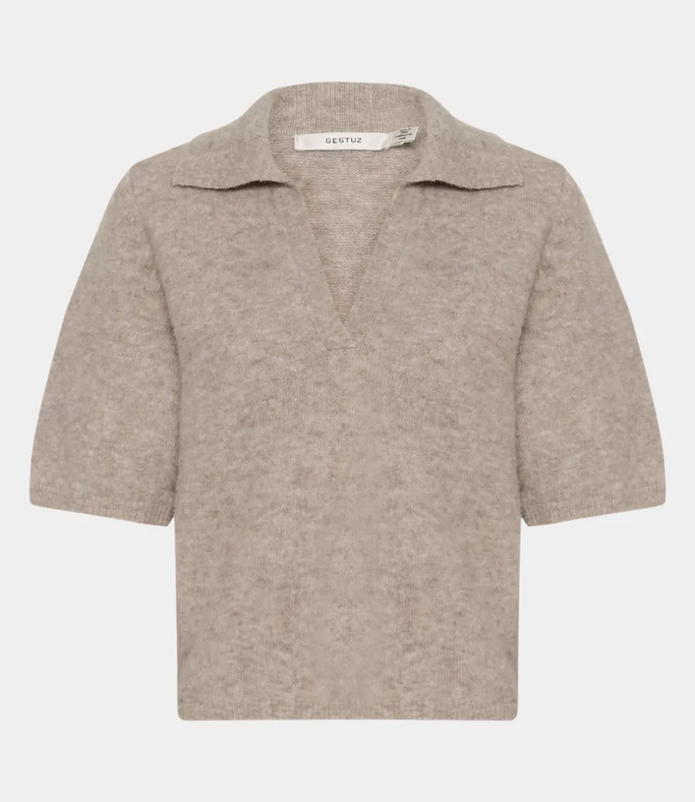 Gestuz GZalpha ss polo pullover Warm Sand Melange 10910035-1512141