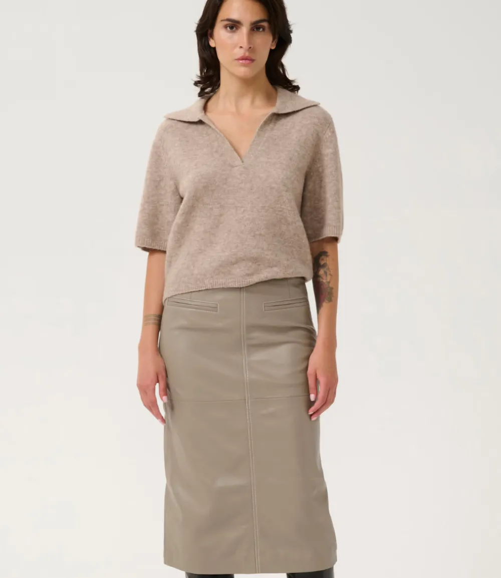 Gestuz GZalpha ss polo pullover Warm Sand Melange 10910035-1512141