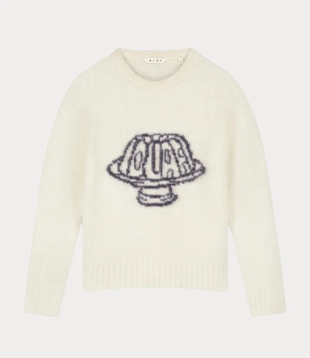 Olaf jelly crewneck knit light cream Lees meer.